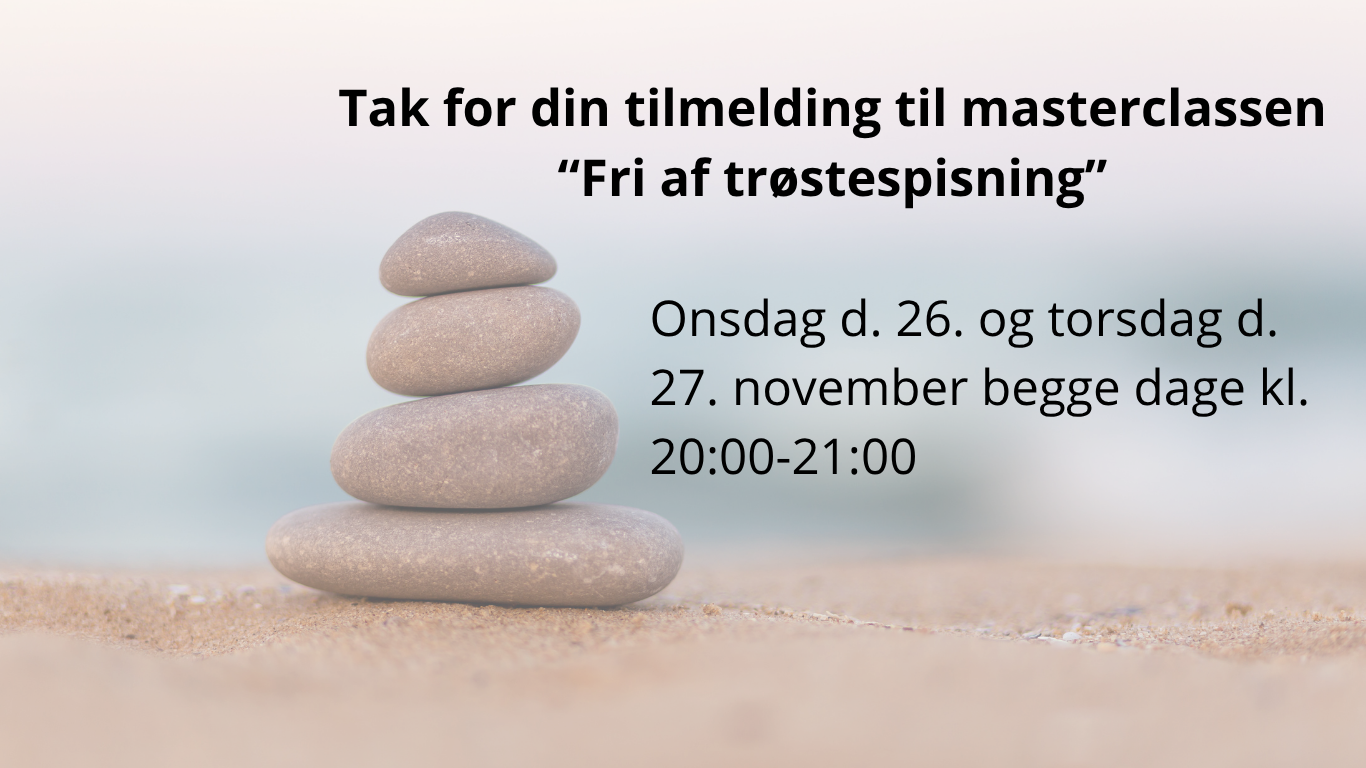 Jeg har sendt dig en e-mail med ZOOM link til masterclassen. Jeg har oprettet en lukket Facebook gruppe, “Fra overvægt til ligevægt”, hvor jeg samler al min gratis undervisning.